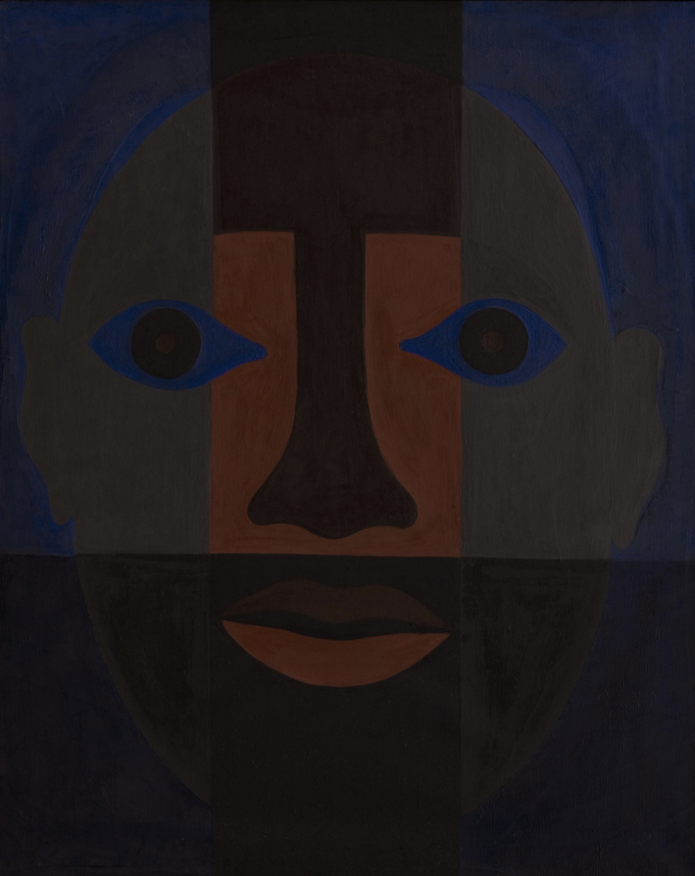 Following this opportunity, Ringgold experimented with her subject matter and use of color, creating her “Black Light Series” (1967-1970), characterized by canvases of masked faces referencing African art and design, often utilizing strong shades of black and deep muted colors. Concurrently, she actively participated in protests against the gross exclusion of women and people of color in New York City's art world exhibitions and collections.